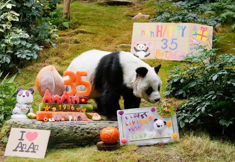 大熊猫安安生日时候的资料图。(图片来源:香港中通社)