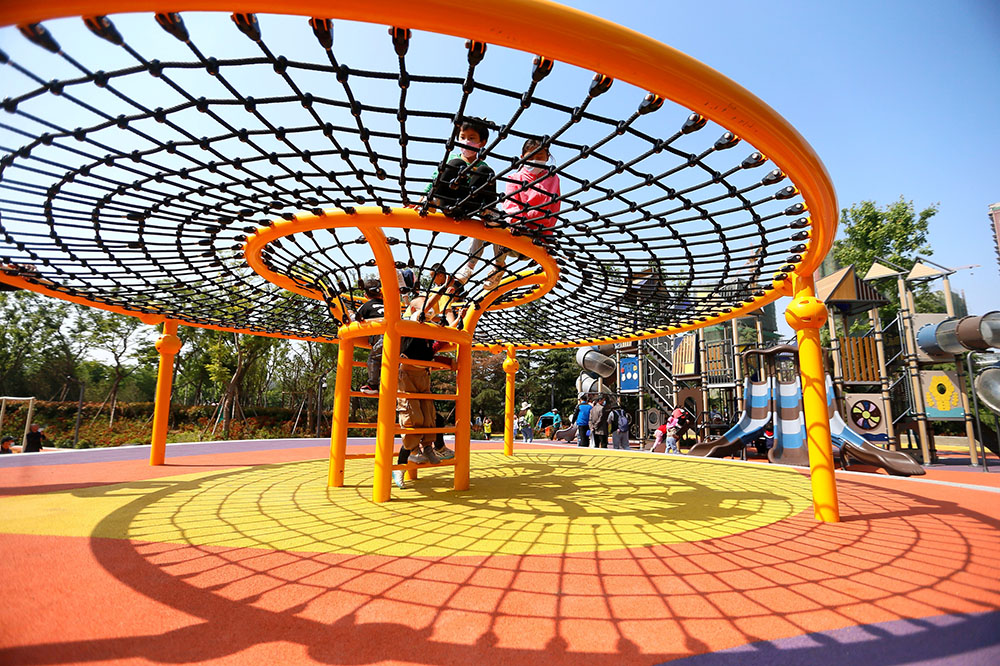 小朋友在承德市双桥区一处“口袋公园”玩耍。(图片来源:新华社)