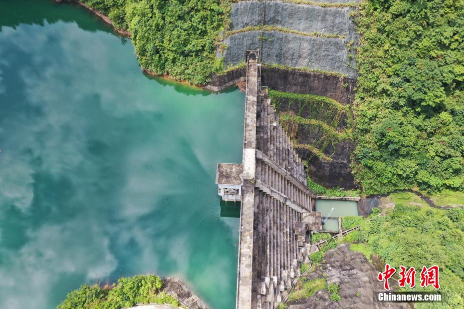 俯瞰贵州省黔东南苗族侗族自治州剑河县岑松镇南岑水库,呈现出一幅“河清、岸绿、景美”的山水画卷。(图片来源:中新网)