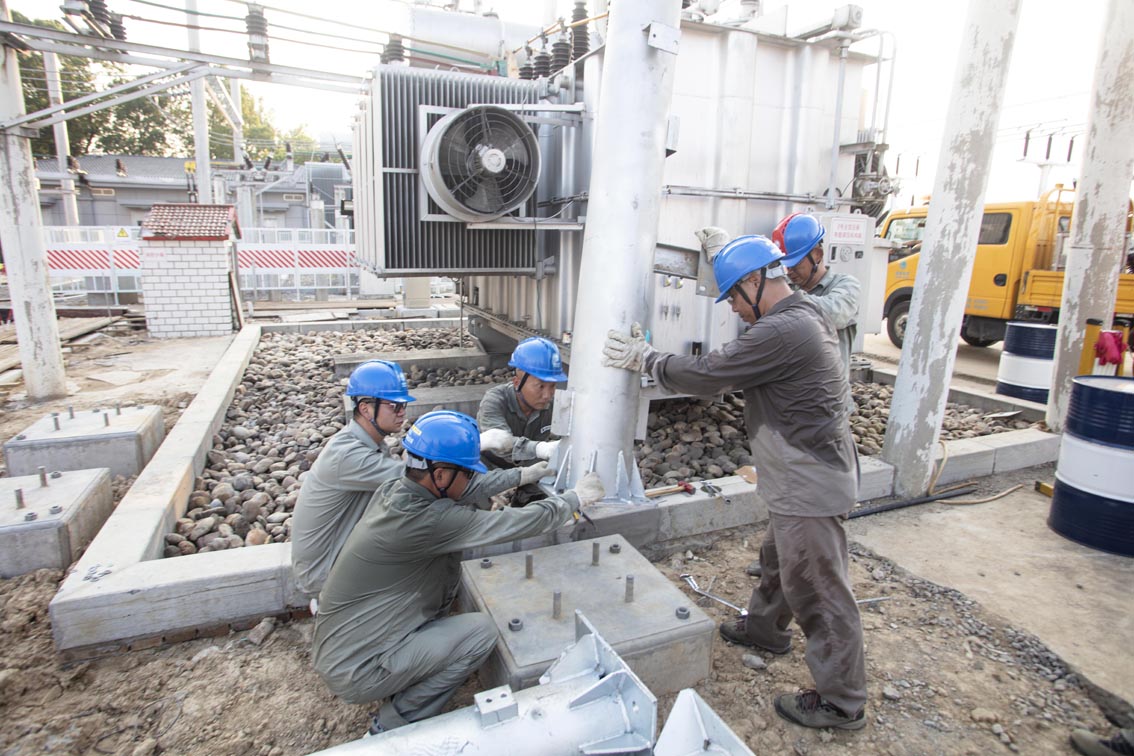2022年8月2日,国网宜昌供电公司变电检修分公司员工战高温,奋战在110千伏胡场智慧变电站改造工程现场。(图片来源:中新社)