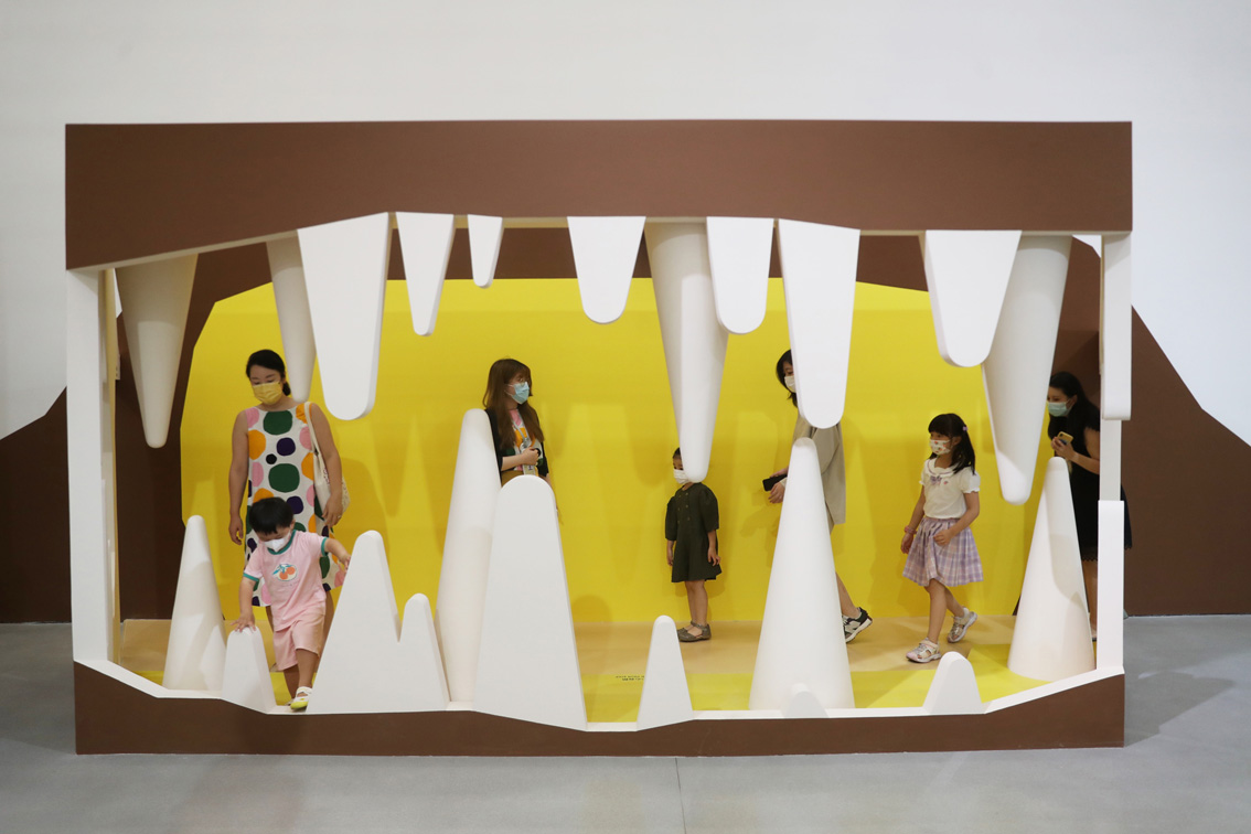 8月5日,上海西岸美术馆推出全新亲子互动装置展“哇!地下!”。这也是西岸美术馆与蓬皮杜艺术中心五年展陈合作项目之一。该展览由法国知名设计师玛塔莉·卡赛特打造,让小朋友进入地下探索奇妙的生态王国。图为观众走进装置作品《咆哮洞穴》。