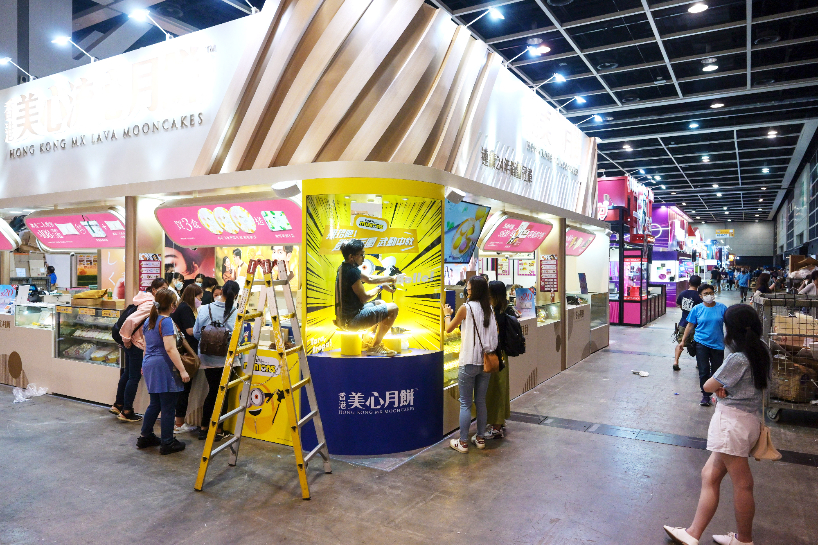 8月10日在香港会展中心拍摄的一家参展商展台。(图片来源:新华社)