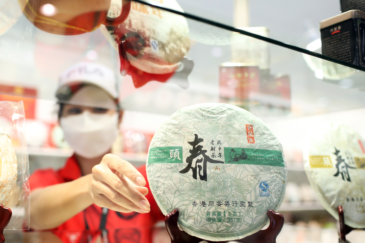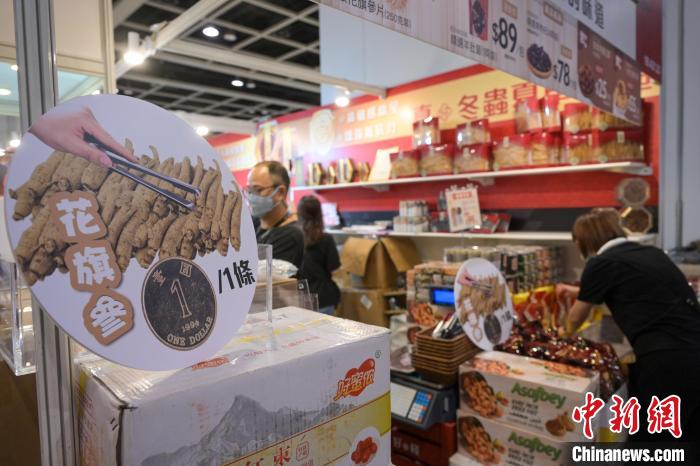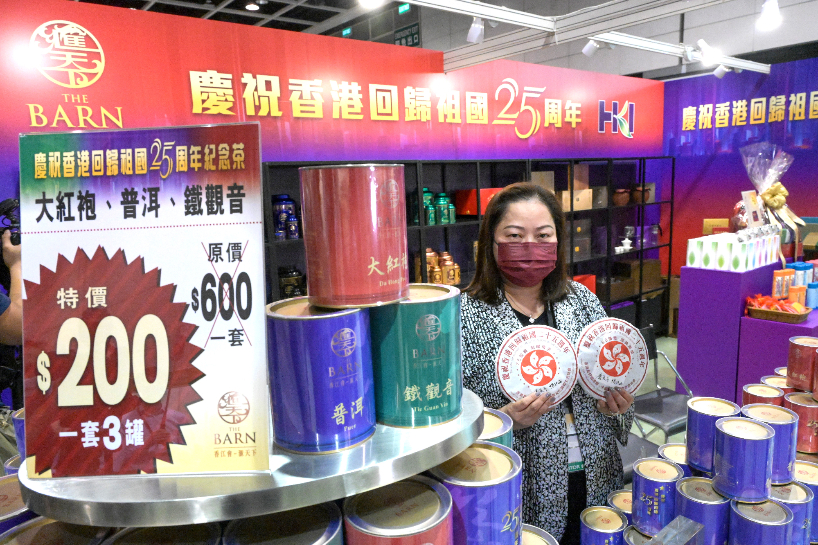 有展商推出庆祝香港回归祖国25周年纪念茶。(图片来源:中新社)