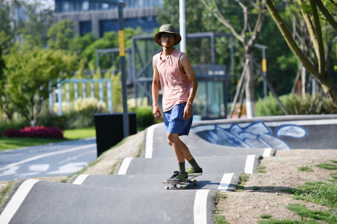 在北京一个陆冲爱好者微信群里,常常有人清晨6点就到朝来森林公园的碗池打卡晨练,练完再去上班。(图片来源:新华社)