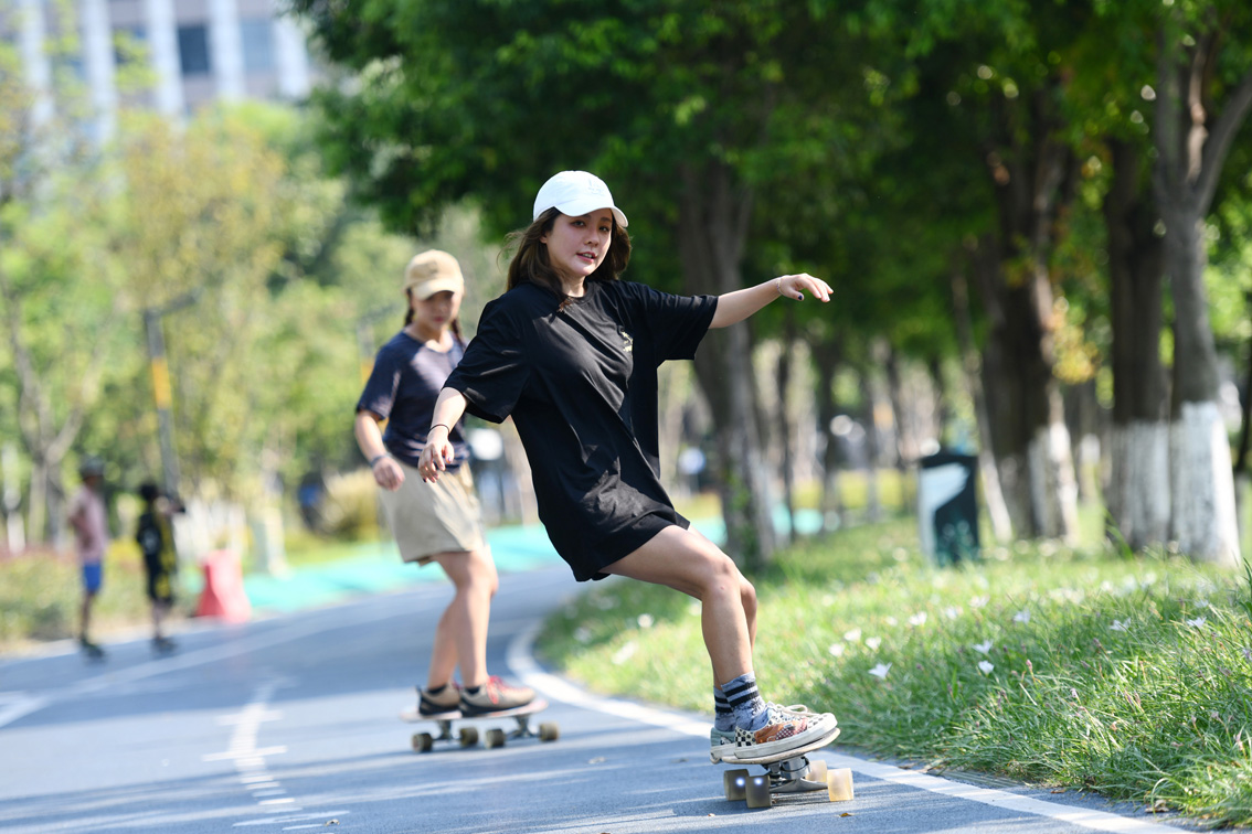 滑板被列为奥运正式项目是陆地冲浪崛起的另一大诱因,越来越多的年轻人开始学习滑板,培养个性化的兴趣爱好。(图片来源:中新社)