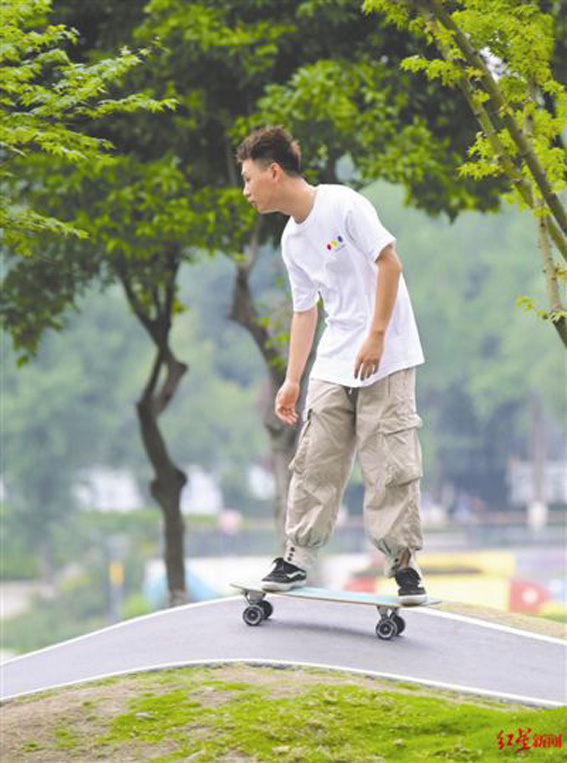 在地处西南的成都,“陆地冲浪”正成为滑雪、冲浪爱好者的一道“代餐”。(图片来源:《成都商报》)