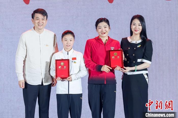 徐梦桃(右二)、管晨辰(左二)受聘中华慈孝文化大使。