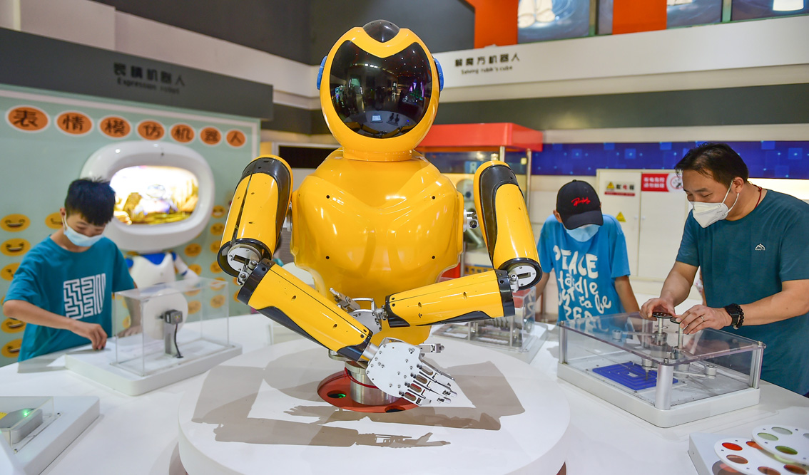 7月27日,在合肥科技馆里,孩子们在体验科技的神奇与魅力。暑期以来,许多市民带着孩子来到位于合肥市蜀山区的合肥市科技馆近距离感受科技魅力,在丰富青少年暑期生活、学习科学技术知识的同时,共享亲子快乐时光。(图片来源:人民网)