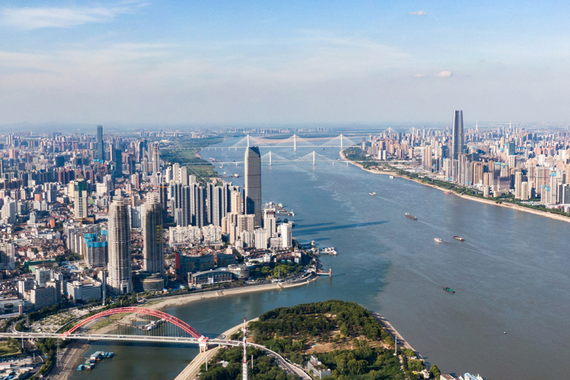 8月14日拍摄的长江与汉江交汇处(无人机照片)。(图片来源:新华社)