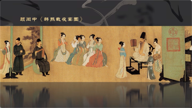 一千多年前,南唐画家顾闳中以传神笔法,成就了名垂千古的《韩熙载夜宴图》;20世纪中叶,荣宝斋曾倾注心力,完成了这幅传世之作的复刻。如今,荣宝斋又以木版水印作品《韩熙载夜宴图》联名潮流品牌,打造了一场“潮人YEAH宴”。在华裔潮流艺术家Digiway笔下,南唐名臣韩熙载与中外友人欢聚一堂,听电子音乐、打电子游戏,把一场聚会办得热闹非凡……画作中,艺术家巧妙保留了部分古风元素,又在原作场景中融合潮流文化符号,塑造出古今中外碰撞融合的奇妙意境。