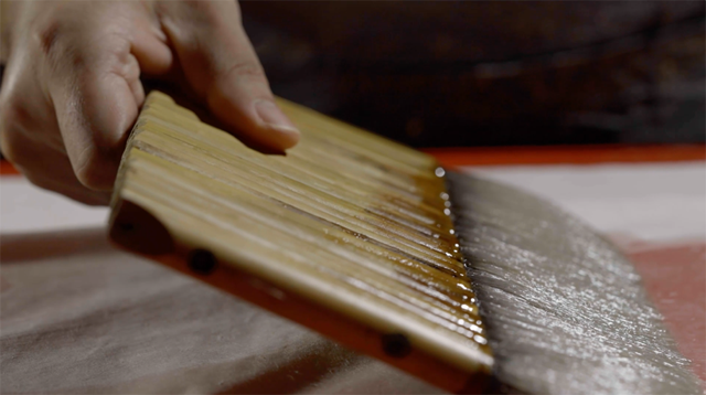 装裱又称“装潢”“装池”“裱褙”,是为中国传统书画艺术而生的独特装潢工艺。恰如其分的装裱,不仅有助于书画作品的保存和留传,还能烘托艺术效果,令其神采飞扬。1974年,荣宝斋的老师傅张贵桐与王家瑞带领装裱车间的技术骨干,抢救山西省应县木塔中契丹版大藏经等文物。一脉相承的勤勉与坚持,使得荣宝斋装裱修复技艺在六十余年里形成了冲洗、揭旧、嵌补、全色等一整套完备的工艺流程,在装裱界独树一帜。2008年,荣宝斋装裱修复技艺正式列入中国国家级非物质文化遗产项目名录。