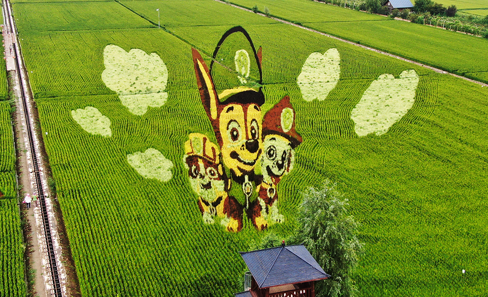 稻田画《小狗汪汪队》。(图片来源:新华社)