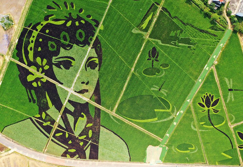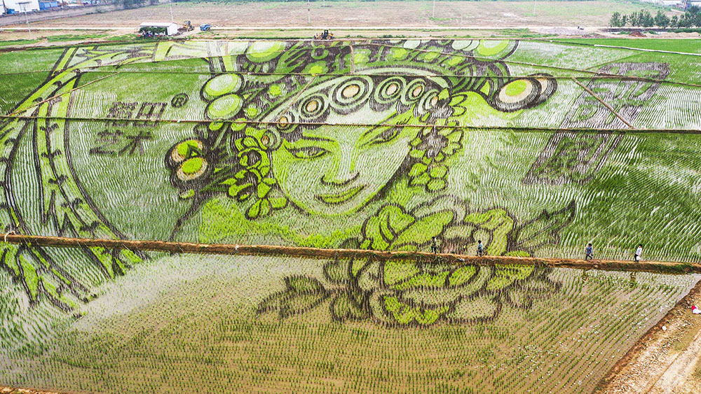 河北省遵化市景观稻田拍摄的戏曲花旦图案。(图片来源:新华社)