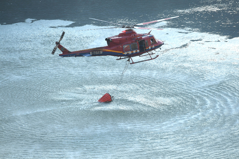 8月19日早上6:20,重庆市应急局从南川火场调度3架直升机回援涪陵北山坪,集中力量扑灭山火。