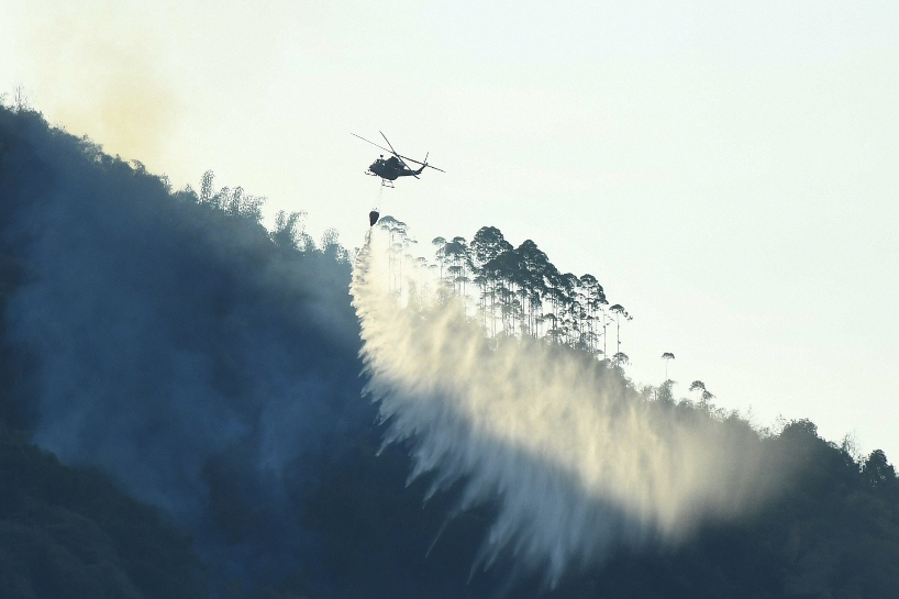 直击重庆涪陵、南川山火 多架救援直升机参与灭火