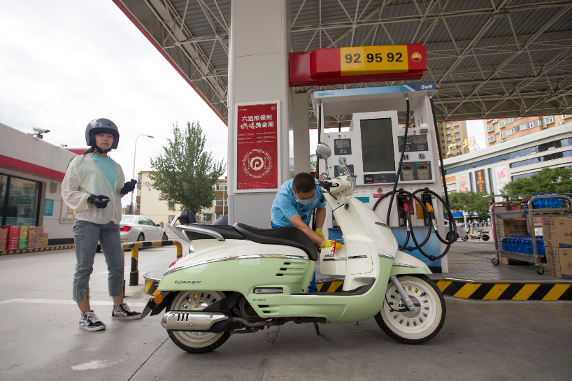 8月23日,山西太原,加油站工作人员在给车辆加油。(图片来源:中新社)