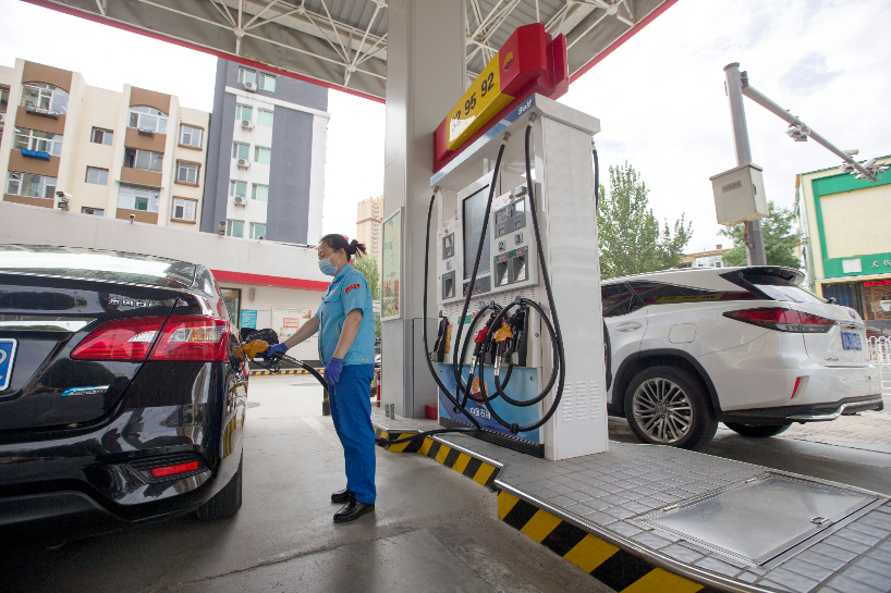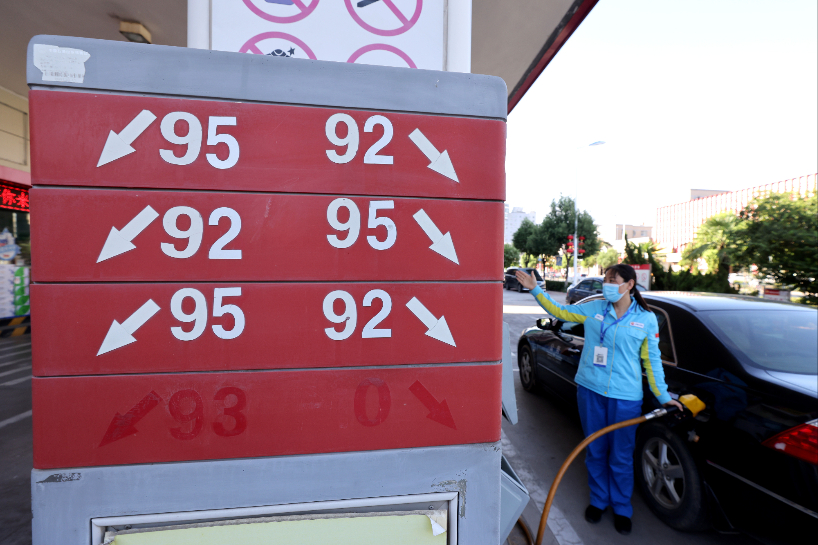 折合升价,全国平均来看,92号汽油、95号汽油、0号柴油每升分别下调0.16元、0.17元、0.17元。(图片来源:中新社)