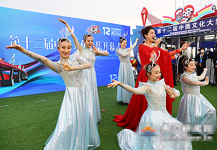 第十二届中俄文化大集开幕式上的歌舞表演。(图片来源:黑河新闻网)