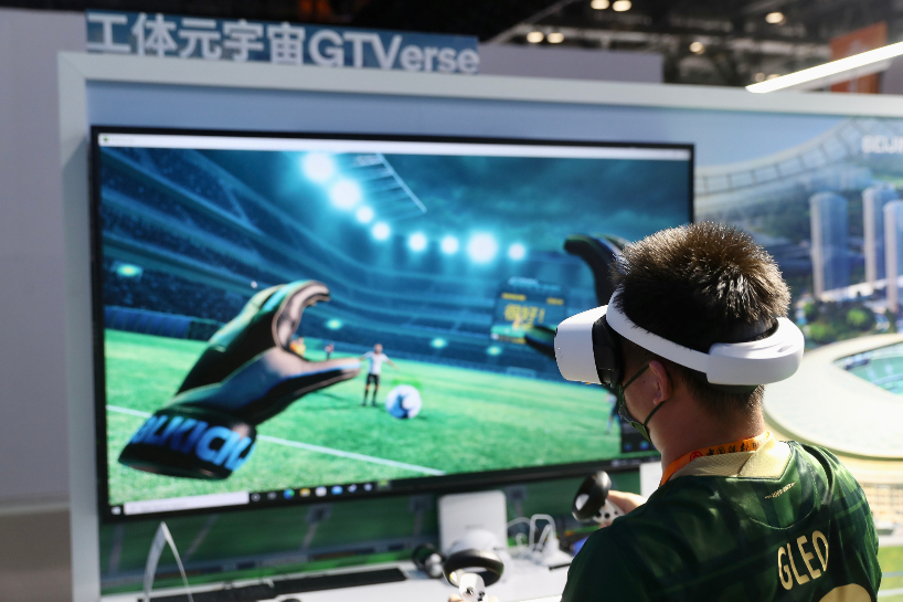 8月28日,工作人员展示工体元宇宙GTVerse。(图片来源:中新社)