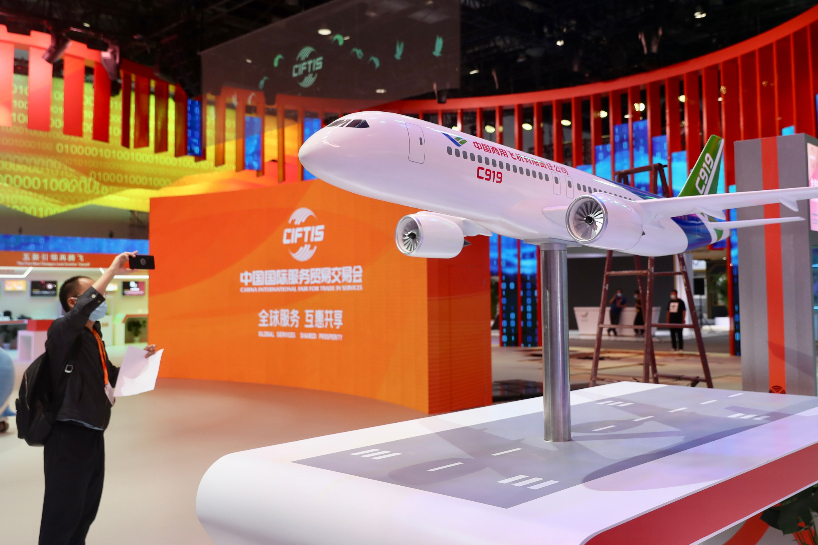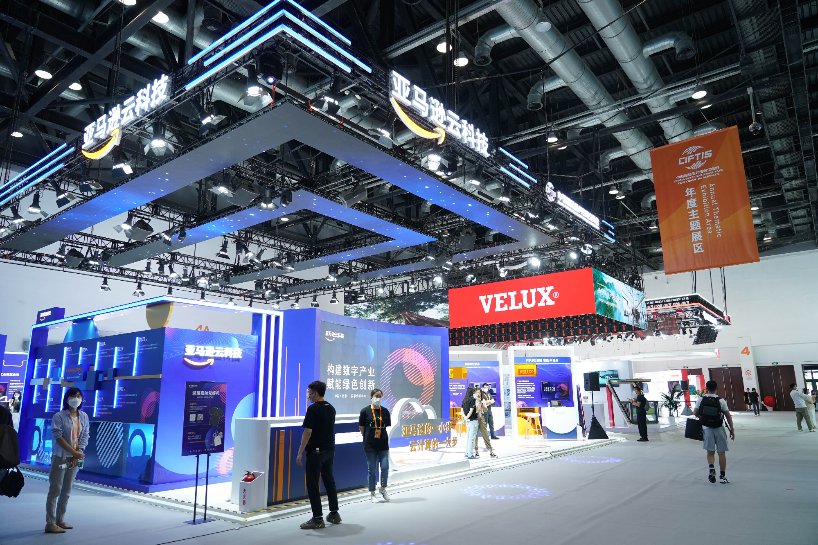 8月28日在国家会议中心一期拍摄的2022年服贸会年度主题展区。(图片来源:新华社)