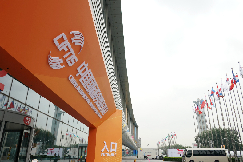 8月28日在国家会议中心拍摄的2022年中国国际服务贸易交易会会场外景。(图片来源:新华社)