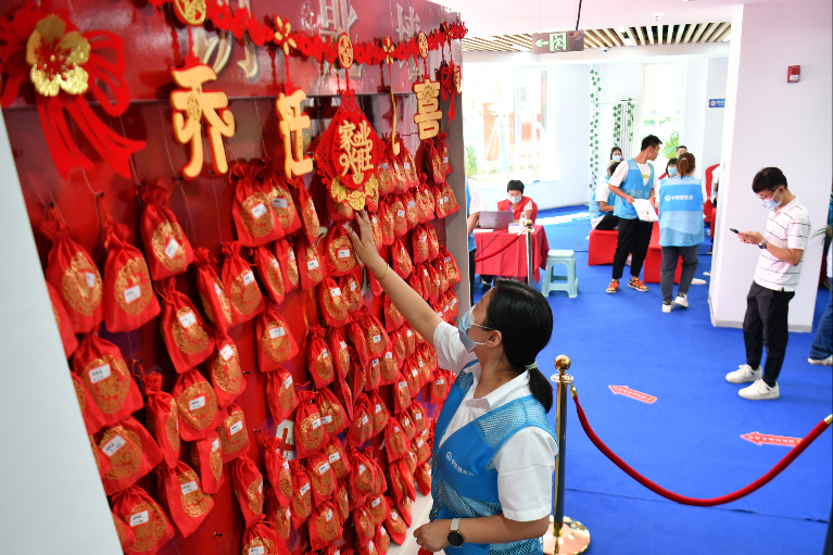 雄东片区A单元安置房项目第六交付点工作人员正在整理钥匙。(图片来源:中新社)