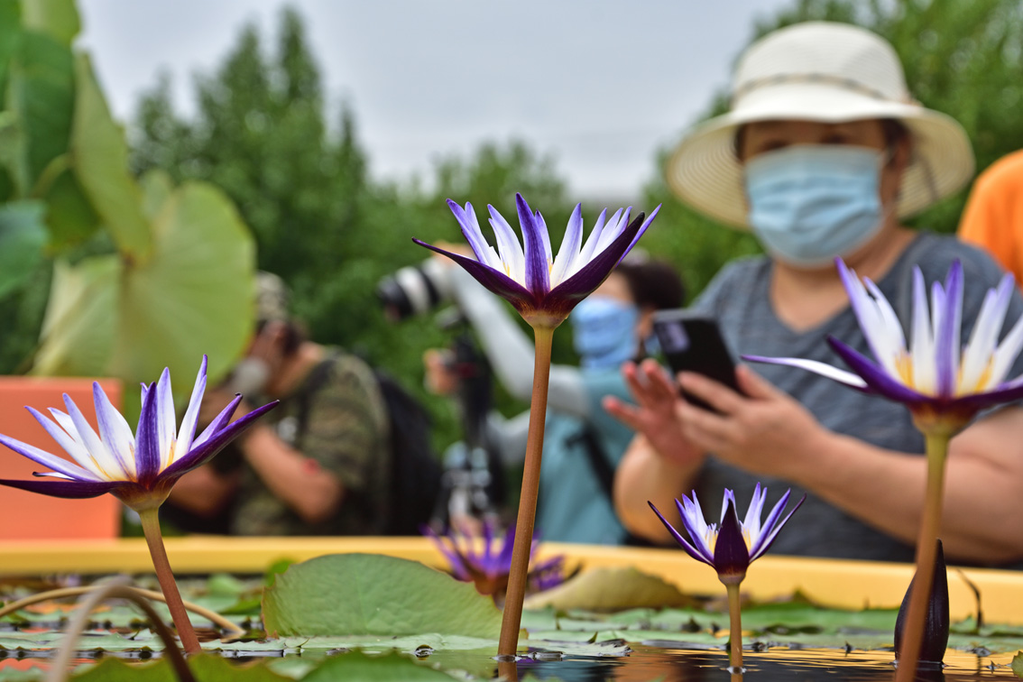 据悉,全园共设花影鱼跃区、山水睡莲区、热带睡莲区、耐寒睡莲区和夜花睡莲区五大睡莲景区,集中展示160余个热带睡莲品种、140余个耐寒睡莲品种。(图片来源:中新社)