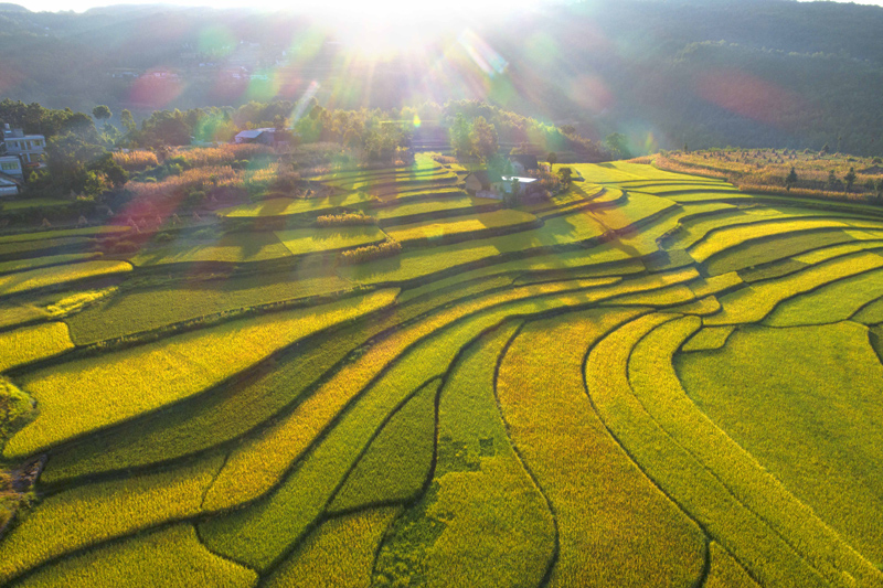 9月5日拍摄的贵州省黔西市锦星镇洪湖村优质水稻种植基地一角。(图片来源:新华社)