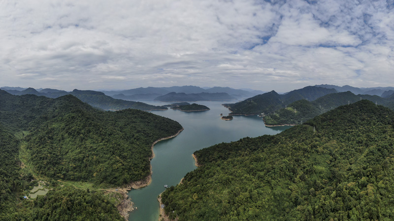9月6日,广东省韶关市,航拍南水湖国家湿地公园。(图片来源:中新社)