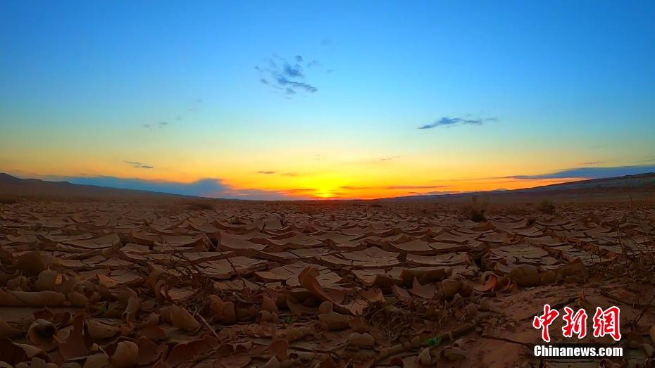 吉拉大峡谷位于古尔班通古特沙漠腹地,长约120公里,南北宽约3公里。图为夕阳之下的峡谷。(图片来源:中新网)