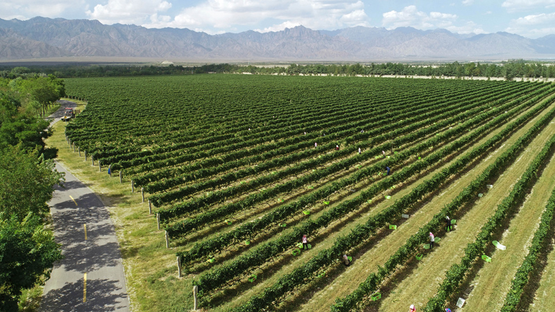 9月4日拍摄的贺兰山东麓的酿酒葡萄种植基地。(图片来源:新华社)