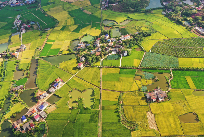 8月28日,在湖南省衡阳市衡阳县台源镇台九村拍摄的田园景色。(图片来源:新华社)