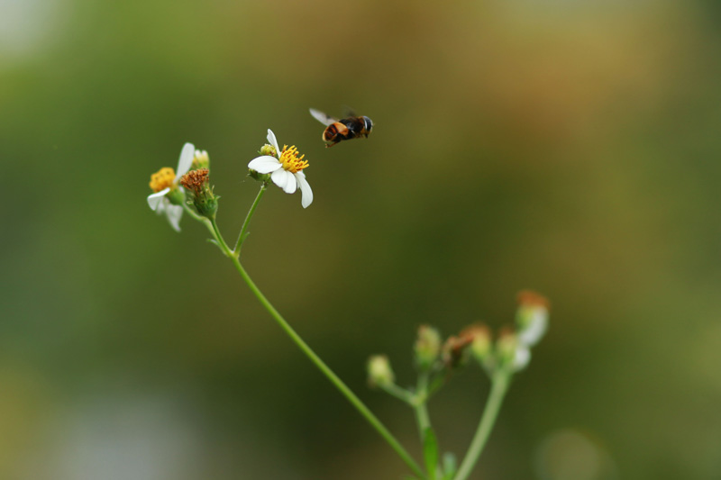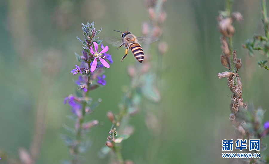 9月4日,在贵州省都匀市,一只昆虫在花间飞舞。(图片来源:新华社)