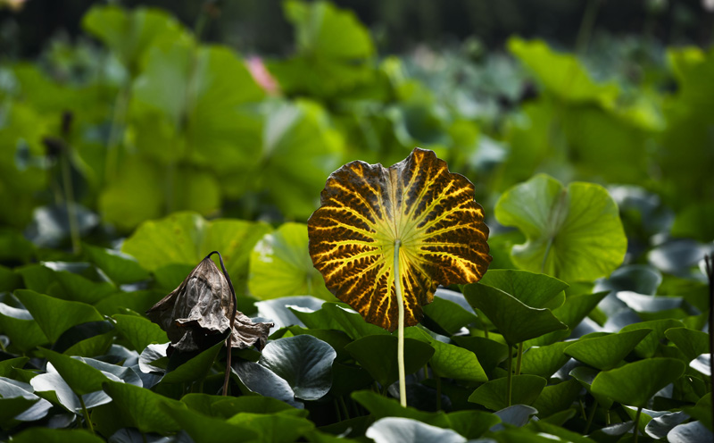 9月4日在河北省玉田县拍摄的荷叶。(图片来源:新华社)