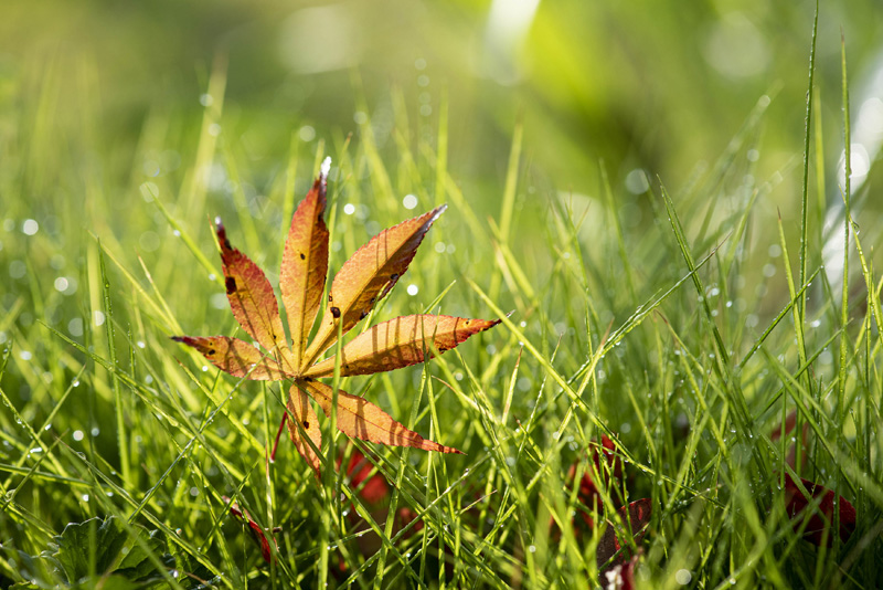 9月4日,在贵州省黔东南苗族侗族自治州锦屏县敦寨镇,枫叶掉落在草丛里。(图片来源:新华社)