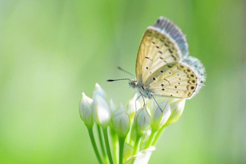 9月2日,在山东枣庄滕州市西岗镇马庙村,一只蝴蝶落在韭菜花上。(图片来源:新华社)
