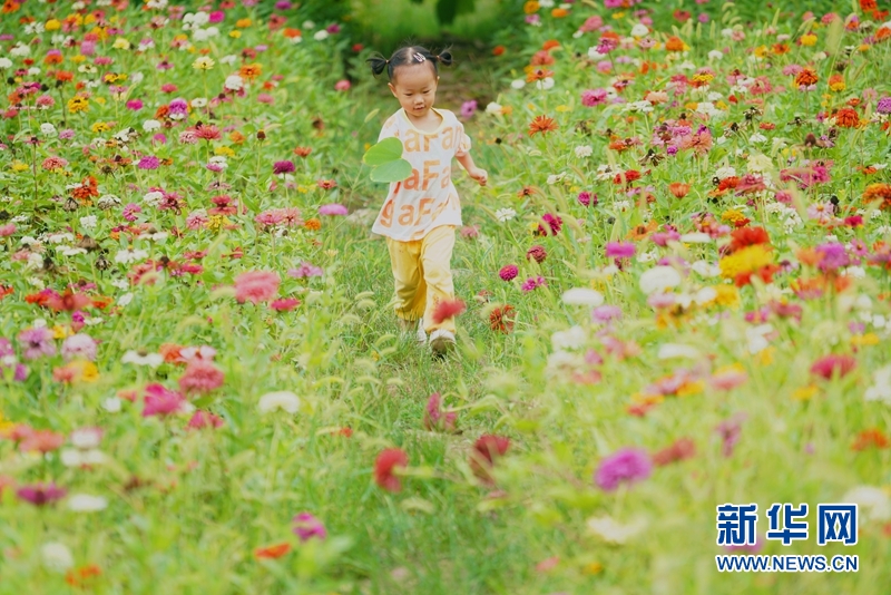 8月31日,小朋友在乐山市绿心公园毛家湾花田的花间小径上游玩。(图片来源:新华网)