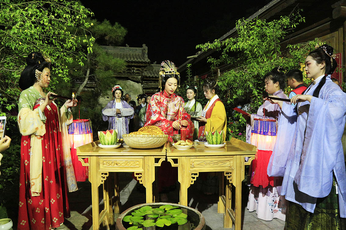 2022年9月7日晚,传统民俗拜月活动展示在甘肃省张掖市甘州区图书馆南华书院进行。