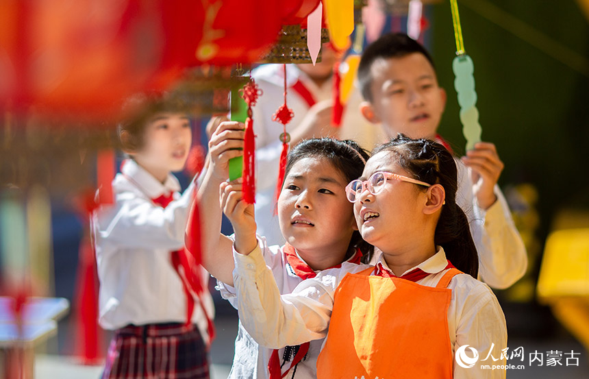 9月7日,内蒙古呼和浩特市玉泉区恒昌店巷小学开展“我们的节日·中秋”主题活动,图为内蒙古呼和浩特市玉泉区恒昌店巷小学学生在猜灯谜。(图片来源:人民网)