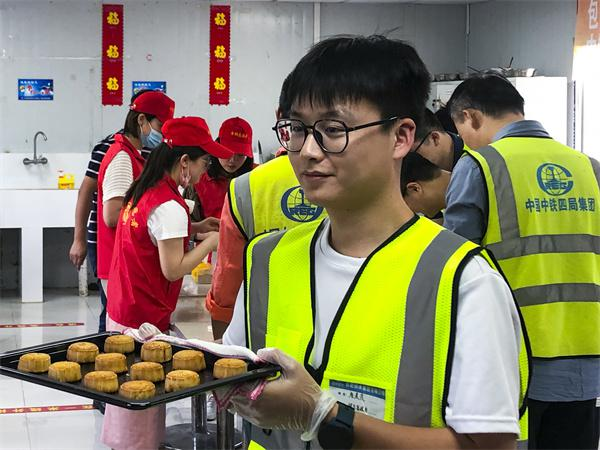 9月7日,传统节日中秋节前夕,义城街道志愿者们前往中铁四局合肥四水厂迁建工程项目部,为工友们送去现做现烤的香甜月饼。(图片来源:《合肥晚报》)
