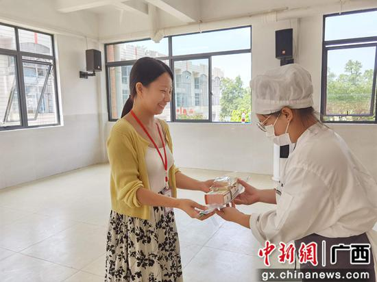 9月9日国庆、中秋“双节”之际,广西生态工程职业技术学院的老师收到了来自学生们的教师节祝福,还尝到了学生们亲手制作的月饼,名副其实“甜”胃又“甜“心。(图片来源:中新网)