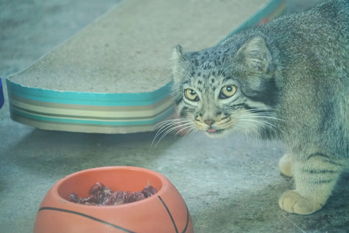 9月10日,在青海省西宁市野生动物园,兔狲“狲大娘”准备品尝特制“月饼”。当日,该园为兔狲“狲大娘”准备了用蔬菜包裹着羊肉、鸡肉、猫罐头馅的特制“月饼”。