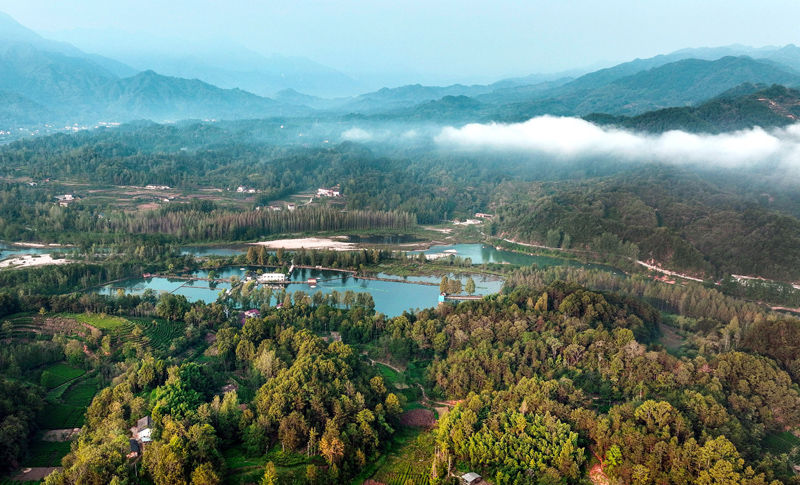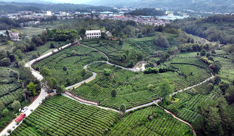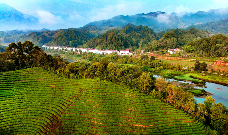 9月12日拍摄的陕西省汉中市西乡县峡口镇的一处茶园(无人机照片)。(图片来源:新华社)