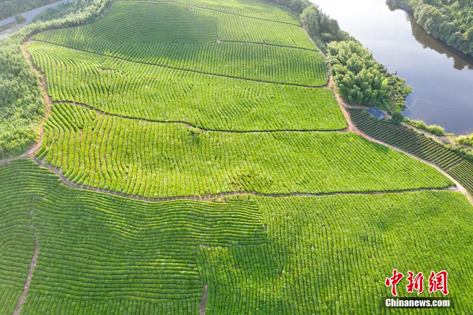 8月20日,航拍江西省抚州市金溪县何源镇的一处生态茶园。(图片来源:中新网)