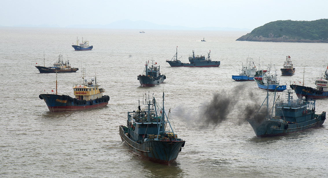 9月13日,今年12号台风“梅花”(强台风级)已于今日凌晨移入东海,浙江沿海客渡运航线已全部停航。图为船舶在宁波象山港锚地避风。(图片来源:中新网)