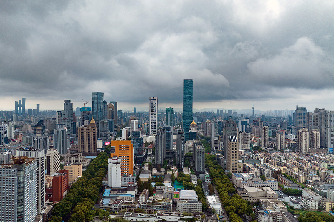 9月13日,受台风“梅花”外围影响,南京上空乌云密布。