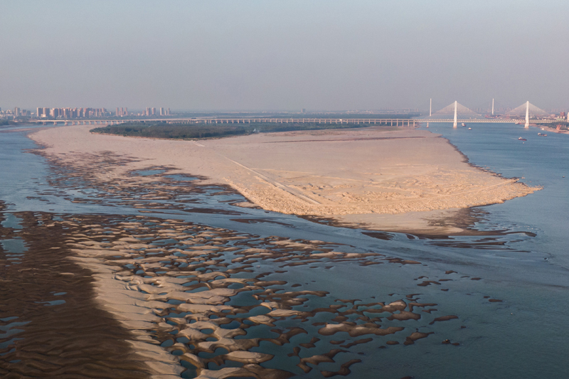 【欧洲时报网】近日,长江武汉段水位持续消退,大片滩涂露出江面,天兴洲北岸几乎与汉口江岸连成一片。截至9月13日22时,长江汉口站水位为13.58米,较历史同期均值偏低逾8米。