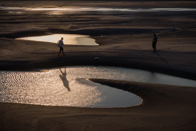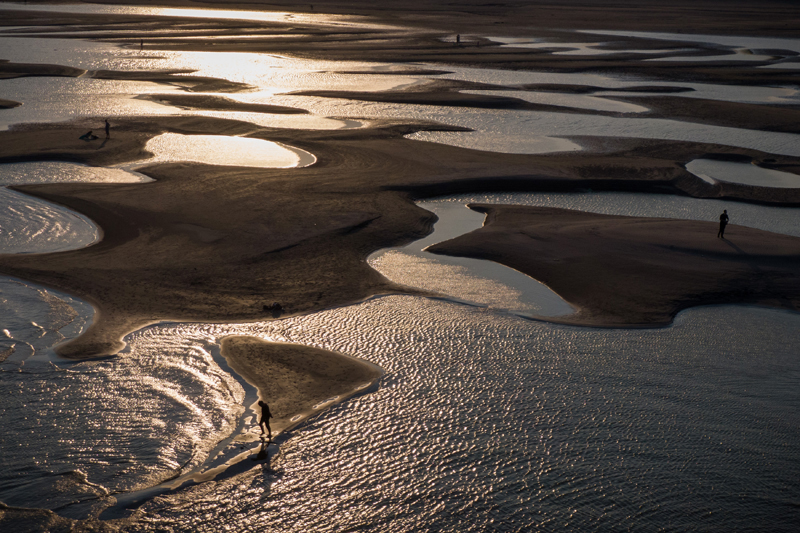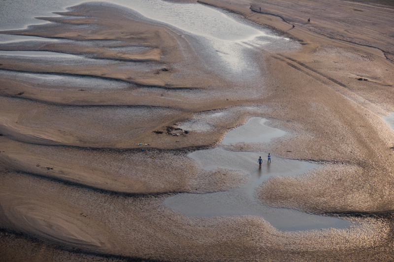 9月13日,市民在汉口江岸滩涂上游玩(无人机照片)。(图片来源:新华社)