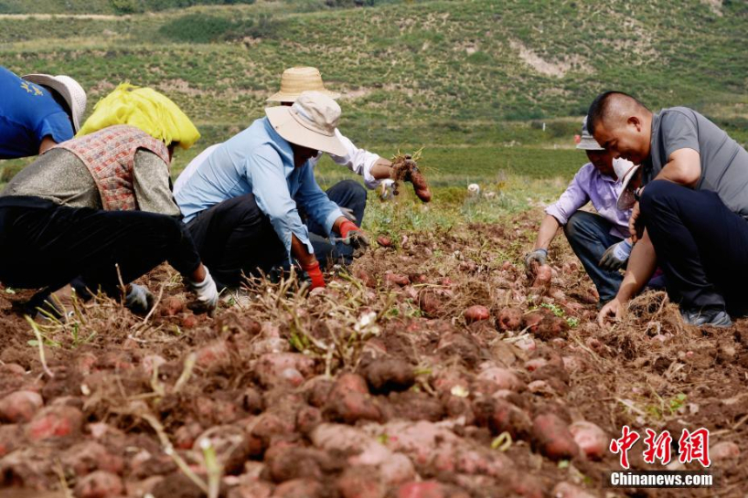 临近秋分节气,中国农民将迎来2022年中国农民丰收节。地处青海省东部农业区的海东市化隆县,2022年共推广种植马铃薯6.2万亩,马铃薯播种面积占总播种面积的11%,年产值约11900万元。图为农户在马铃薯地里劳作。(图片来源:本文图片除标注外均综编自中新网)
