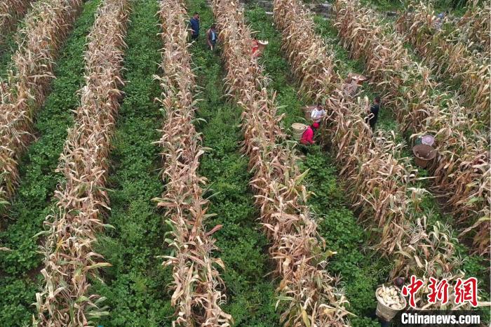 9月中旬,位于四川省东北部、大巴山腹心地带的万源市,正值当地秋粮收获时节,农村处处呈现出一派火热的秋收场面。图为万源市产粮大镇石窝镇玉米丰收。